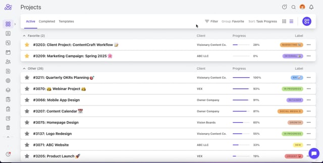 Note: Only the Owner or Member+ (with the option to start projects, manage people and use reports) can see this option.