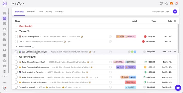 The Split Time option allows you to manually adjust how many hours you plan to work on a task for each day inside the Workload view.