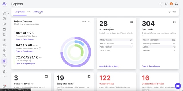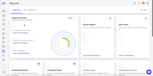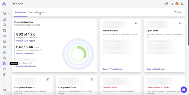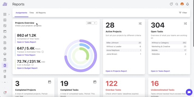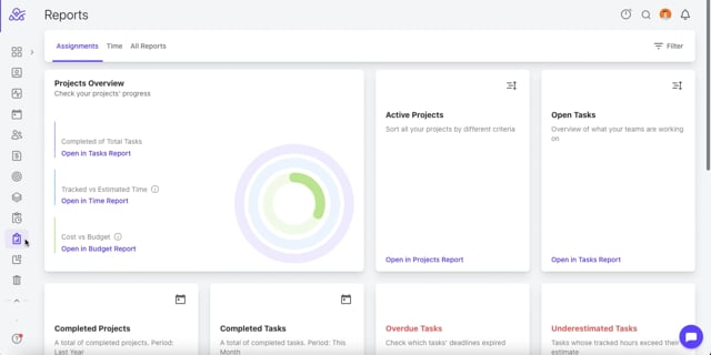 The Time Report shows how much time has been tracked across all projects and lets you filter out results in various ways. All the tasks and projects in the report are clickable.