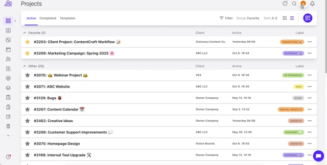 The Activity section in ActiveCollab gives you a chronological stream of everything that’s happening across your projects.