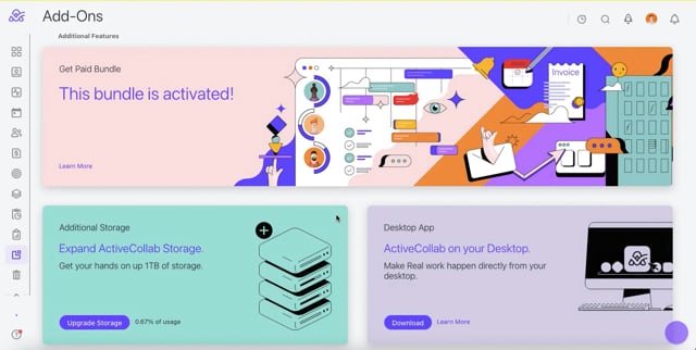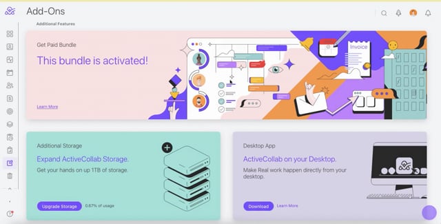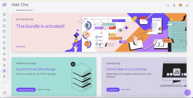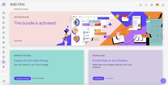 ActiveCollab allows your clients to pay invoices online. You'll be able to accept PayPal payments, as well as credit cards via PayPal Payflow Pro, Authorize.Net, Stripe, or Braintree.