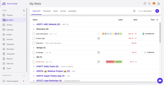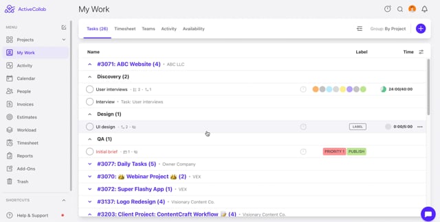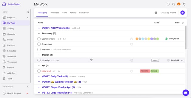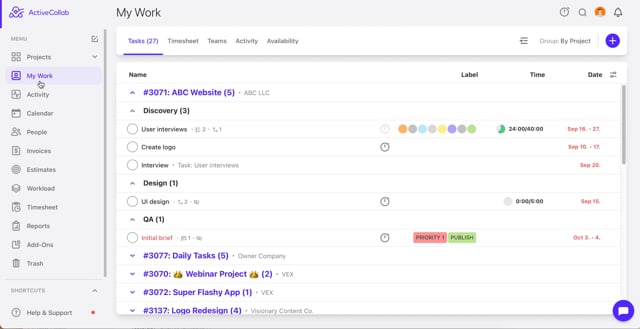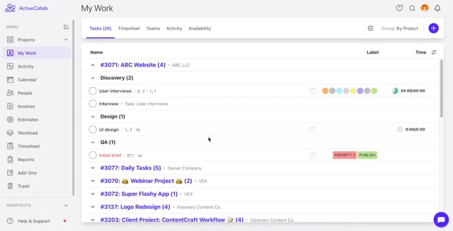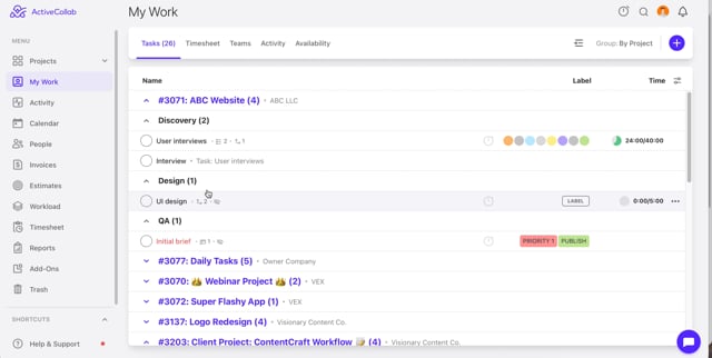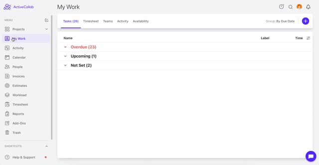 The Tasks tab within the My Work section is your personalized command center, showing all tasks assigned to you across all projects. It allows you to track deadlines, organize work, log time, and manage tasks efficiently from a single view.
