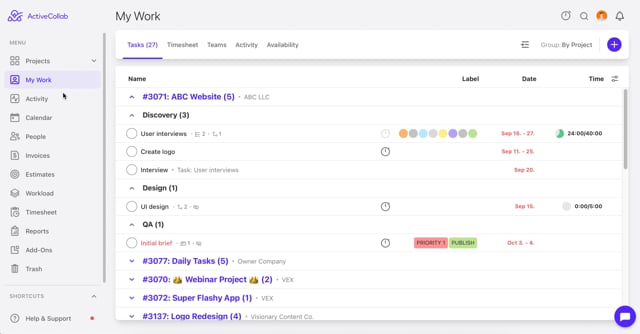- Note - Tasks are shown under their assigned project. Each project groups tasks by Task List, providing a structured view of task organization within that project. The Projects can be sorted using the Drag&Drop option.