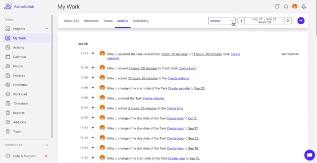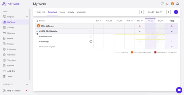 - Timesheet – A weekly record of time you’ve tracked or logged.