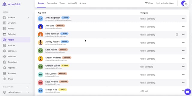 - Step 12: Click on “Invite” and you’ve invited the user to your account. Invited users will get an email with the login link to your ActiveCollab account.