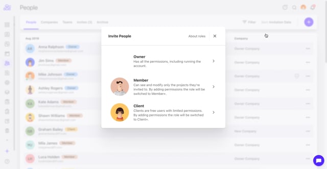 Before you can start working together on projects, you’ll need to invite your team to ActiveCollab. You’ll then be able to assign tasks and allow your clients to track progress.