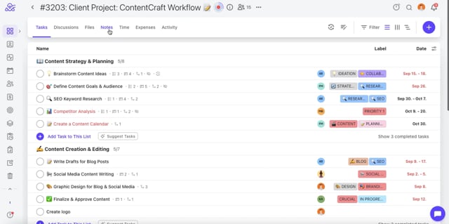 Notes help you share your thoughts and ideas about the project. You can collaborate on notes with others and track the entire history of changes.