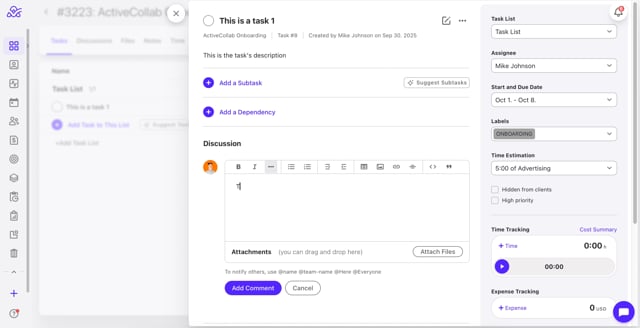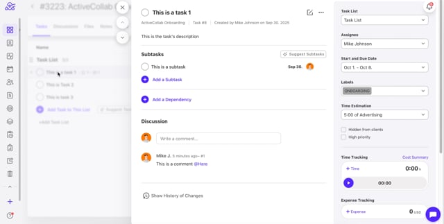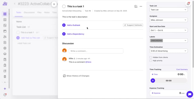 If you set an assignee and/or subscribers, they’ll get a notification about the new task in ActiveCollab and via email: