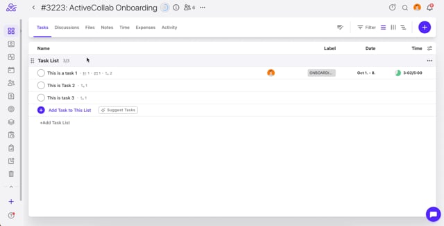 - Step 1:In the Tasks tab, click “+ Add a Task List”.