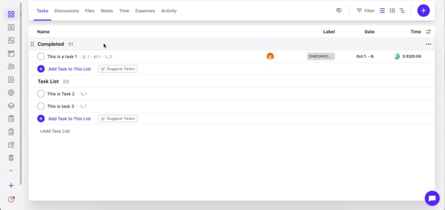 Tasks tell your team what needs to be done and when. They can be organized into task lists and assigned to anyone on the project.