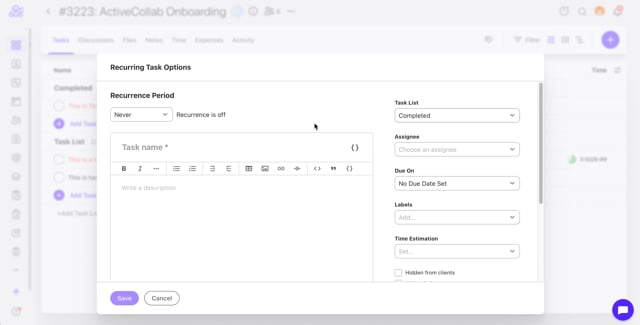 - Step 2: Fill out the task details (task name, description, add the assignee, etc.)