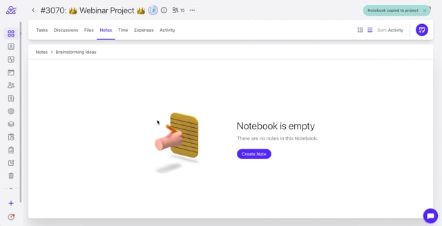 Just like in your everyday work, ActiveCollab lets you organize your notes into groups by creating Notebooks.